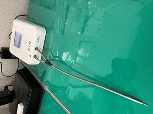 水中で真珠に超音波を発し、真珠表面から核までの反射速度から、真珠層の厚さを測定。宝石鑑定士が波形・数値を読み取り、巻厚を測定します。